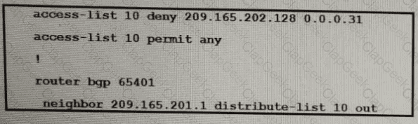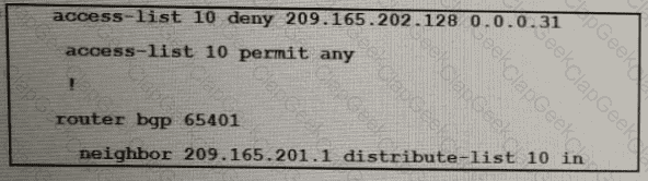 A company with autonomous system number AS65401 has obtained IP address block 209.165.200.224/27 fro, ARIN. The company needed more IP addresses and was assigned block209.165.202.128/27 from ISP2. An engineer is ISP1 reports they are receiving ISP2 routes from AS65401. Which configuration onR1 resolves the issue?