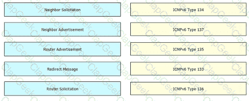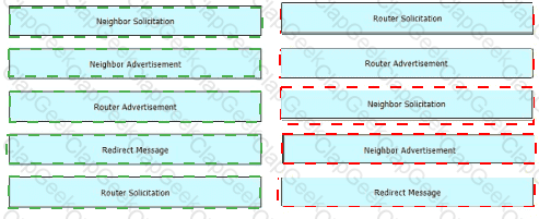 Drag and drop the ICMPv6 neighbor discovery messages from the left onto the correct packet types on the right.