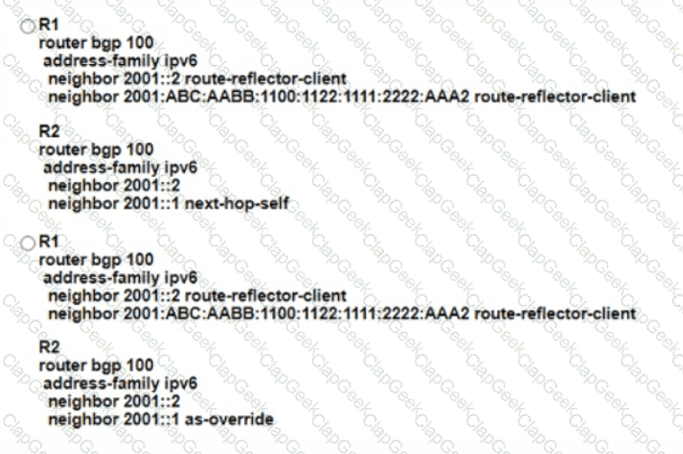 The neighbor relationship is not coming up Which two configurations bring the adjacency up? (Choose two)