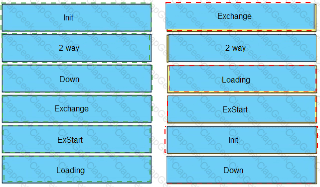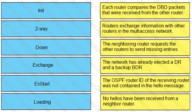 Drag and drop the OSPF adjacency states from the left onto the correct descriptions on the right.