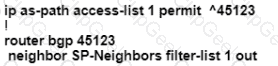 After some changes in the routing policy, it is noticed that the router in AS 45123 is being used as a transit AS router for several service provides. Which configuration ensures that the branch router in AS 45123 advertises only the local networks to all SP neighbors?