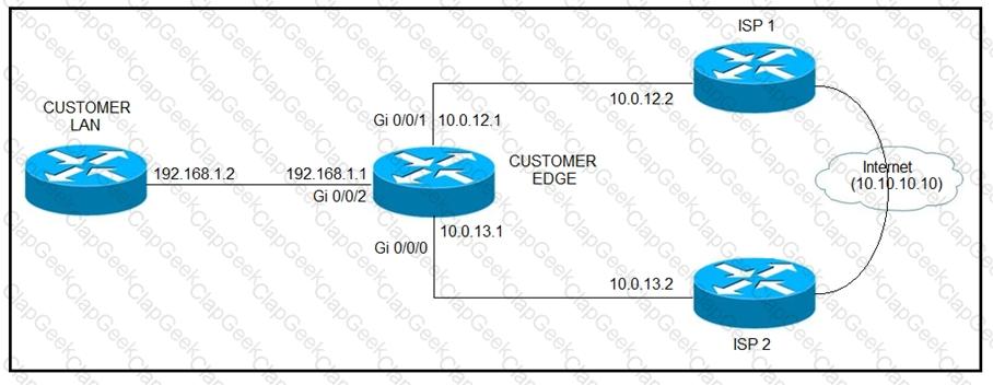 ISP 1 and ISP 2 directly connect to the Internet. A customer is tracking both ISP links to
