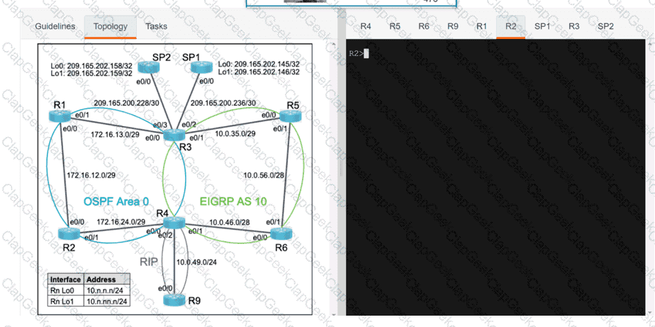 R1 cannot receive the R2 Interfaces with individual prefixes. What must be reconfigured to advertise R2 Interfaces to R1?