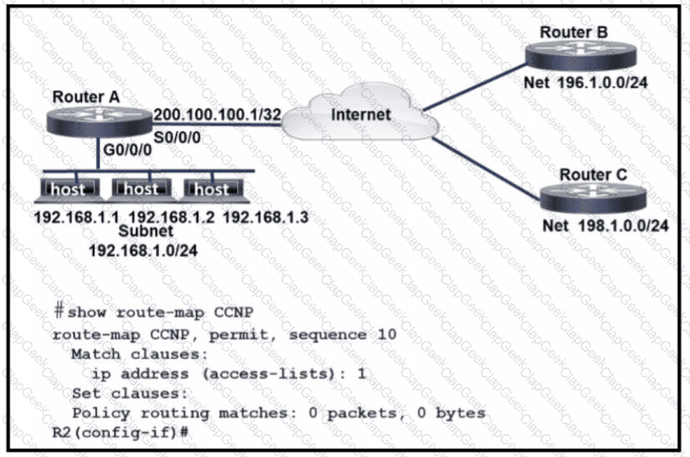 Which configuration configures a policy on R1 to forward any traffic that is sourced from