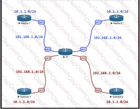The Math and Science departments connect through the corporate. IT router but users in the Math department must not be able to reach the Science department and vice versa Which configuration accomplishes this task?