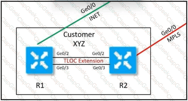 Customer XYZ cannot provision dual connectivity on both of its routers due to budget constraints but wants to use both R1 and R2 interlaces for users behind them for load balancing toward the hub site. Which configuration achieves this objective?