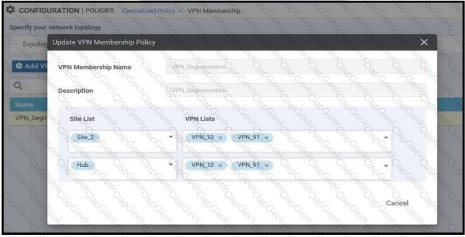 An enterprise has hub and spoke topology where it has several VPNs. An engineer must allow users in VPN91 to reach users in VPN92 and VPN10 to reach VPN91 and VPN92. Which configuration meets these requirements?