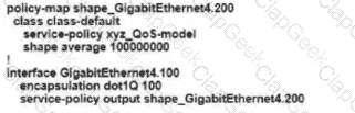Refer to the exhibit An engineer is configuring a QoS policy to shape traffic for VLAN 100 on a subinterface Which policy configuration accomplishes the task?