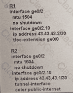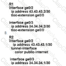 Refer to the exhibit. Which configuration extends the INET interface on R1 to be used by R2 for control and data connections?