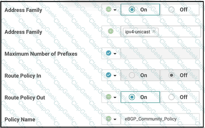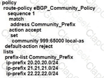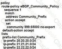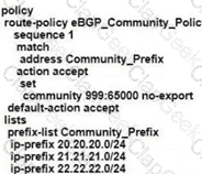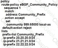 The engineer must assign community tags to 3 of its 74 critical server networks as soon as that are advertised to BGP peers. These server networks must not be advertised outside AS. Which configuration fulfill this requirement?