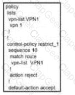 A customer has 1 to 100 service VPNs and wants to restrict outbound updates for VPN1 Which control policy configuration restricts these updates?