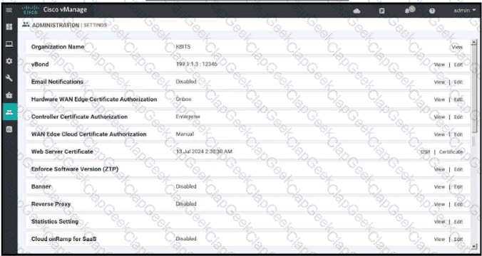 Refer to the exhibit A small company was acquired by a large organization As a result, the new organization decided to update information on their Enterprise RootCA and generated a new certificate using openssl Which configuration updates the new certificate and issues an alert in vManage Monitor | Events Dashboard?