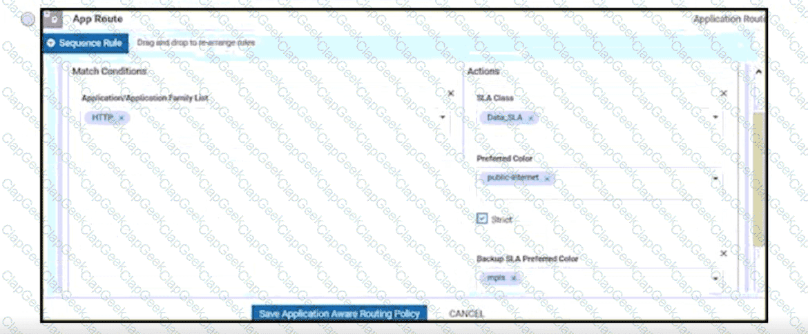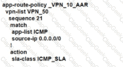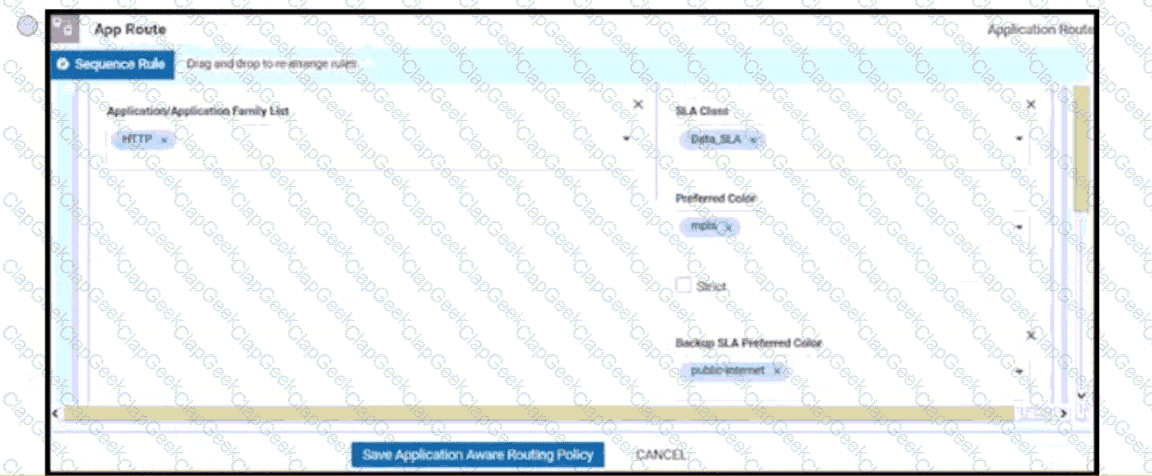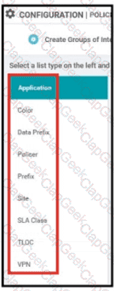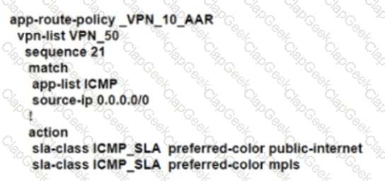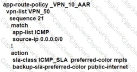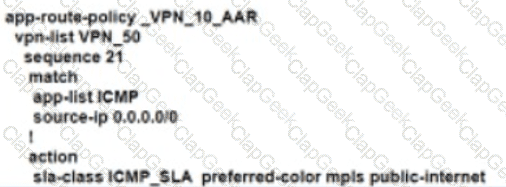 Refer to the exhibit The network team must configure application-aware routing for the Service VPN 50.0.0.0/16 The SLA must prefer MPLS for video traffic but the remaining traffic must use a public network What must be defined other than applications before the application-aware policy is create?