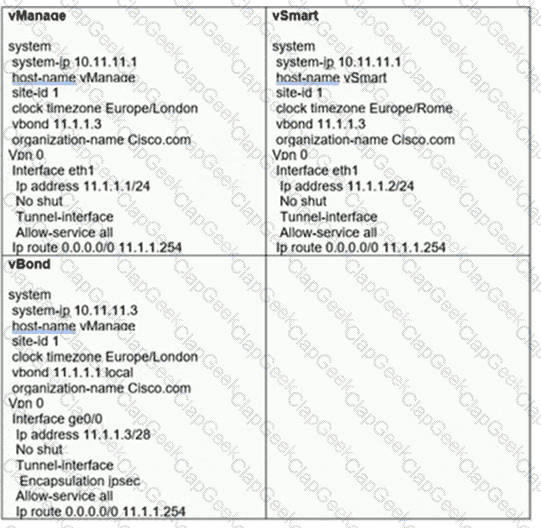 vManage and vSmart have an issue establishing a connection to vBond. Which configuration resolves the issue?