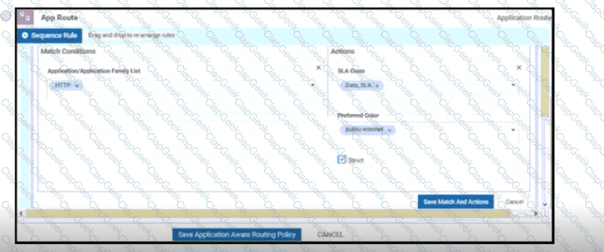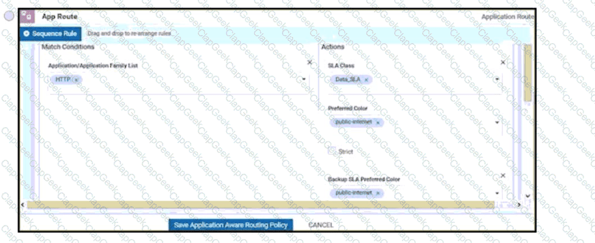 An SD-WAN customer has 23 sites connected to its hub site, where a pair of WAN Edge devices and controllers are placed. All other branches have a single WAN Edge device connected to multiprotocol label switching (MPLS) and public internet circuits. An engineer must configure application-aware routing for a branch that has MPLS and public internet circuits provisioned using feature templates. The requirements for application-aware routing are: