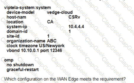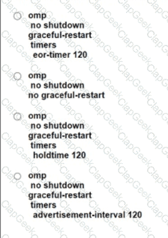 A company deploys a Cisco SD-WAN solution but has an unstable Internet connection. When the link to vSmart comes back up, the WAN Edge router routing table is not refreshed, and some traffic to the destination network is dropped. The headquarters is the hub site, and it continuously adds new sites to the SD-WAN network. An engineer must configure route refresh between WAN Edge and vSmart within 2 minutes. Which configuration meets this requirement?