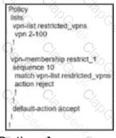 Refer to the exhibit Which command allows traffic through the IPsec tunnel configured in VPN 0?