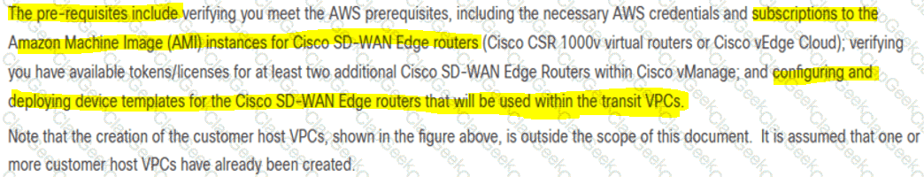 A customer wants to use AWS for Cisco SD-WAN laaS services by deploying virtual SD-WAN routers in a transit AWS VPC The transit VPC then connects via site-to-site IPsec tunnels to an AWS transit gateway Which transit VPC connects via site-to-site IPsec tunnels to an AWS transit gateway?