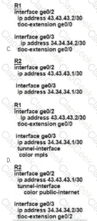 Company E wants to deploy Cisco SD-WAN with controllers in AWS The company's existing WAN is on private MPLS without Internet access to controllers m AWS An Internet circuit is added to a site in addition to the existing MPLS circuit. Which interface template establishes BFD neighbors over both transports?