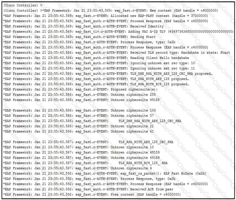 A wireless engineer has performed a Wireshark ccapture on an 802.1x authentication process to troubleshoot a connectivity issue.