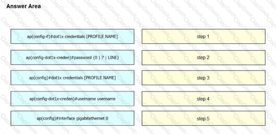 A network engineer must get an autonomous AP to authenticate to the upstream switch via IEEE 802.1 X. Drag and drop the commands from the left onto the right to complete the configuration.