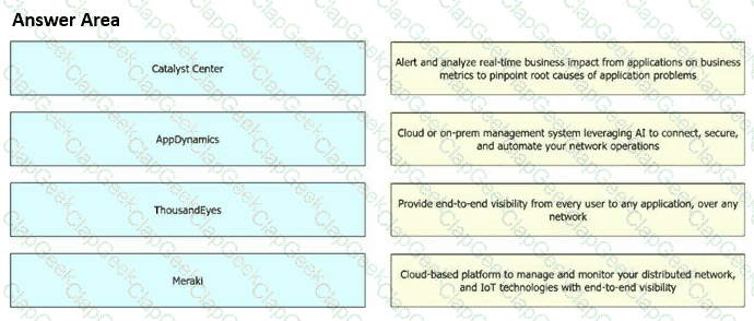 Drag and drop the Cisco Network Assurance platforms from the left onto the corresponding business cases on the right.