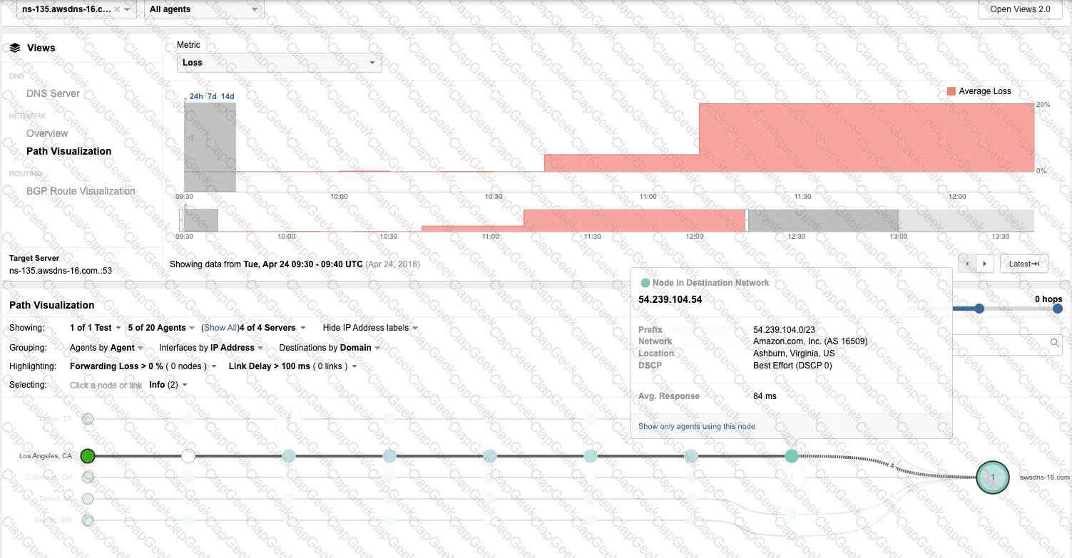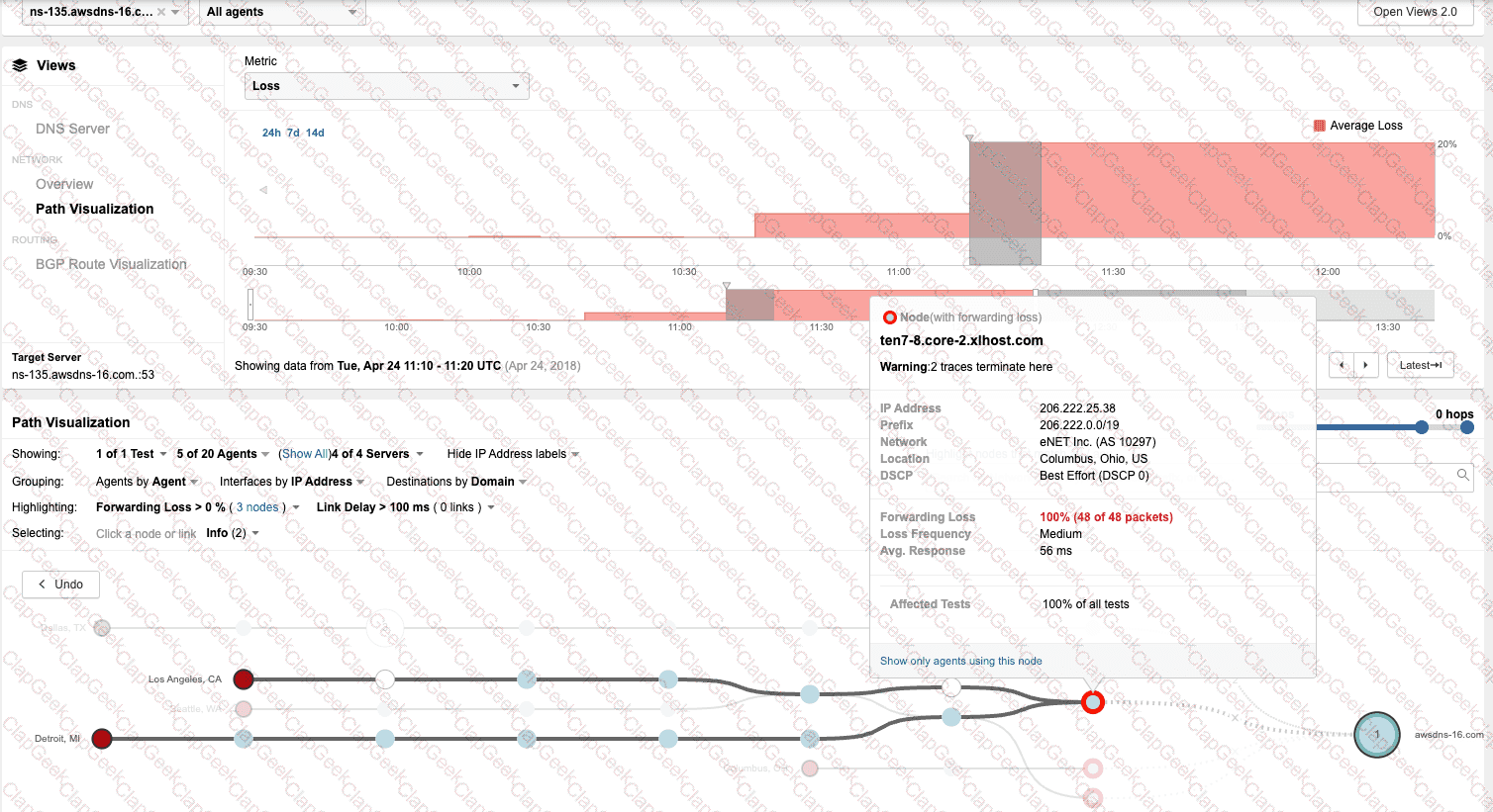 Carefully review the exhibits. Which detail indicates the network issue might be caused by a BGP Hijack?