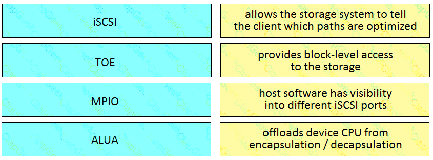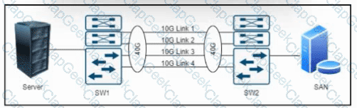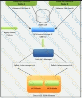 A storage administrator receives reports of network delays when database software attempts to access the storage array. The virtual machines that host the database software are installed on different rack servers connected to the Cisco UCS Fabric Interconnect domain. The existing SAN switches are connected to the Fabric Interconnects using two 8 Gb port-channel interfaces to connect the storage array. The storage administrator has decided to deploy iSCSI storage with four 10 Gbps interfaces connected to the Cisco UCS Fabric Interconnects.