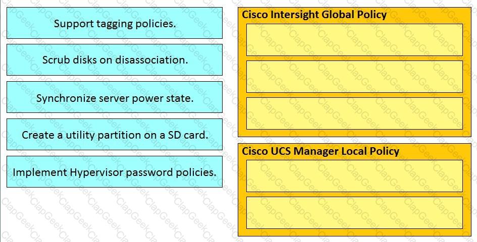 An engineer is implementing a Cisco UCS environment. The system must aggregate all vNICs into a single policy and consistently enforce node disassociation across the cluster. Which two UCS policies meet these requirements? (Choose two.)