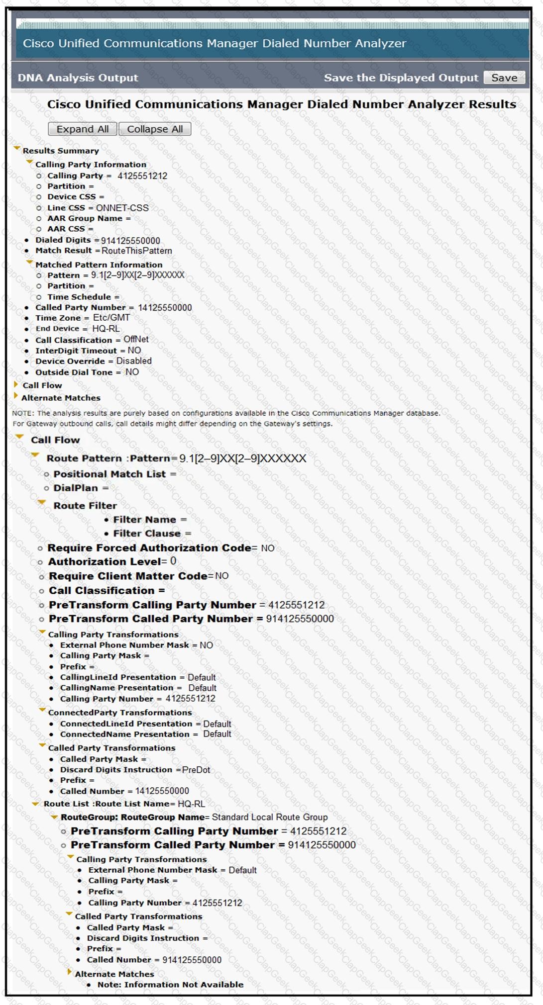 In Cisco Unified Communications Manager globalized call routing is implemented and must confirm that it is correctly implemented without making a call. Which tool do you use for verification?