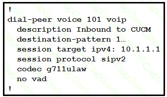 An engineer configures Cisco Unified Border Element to connect the enterprise VoIP network with a SIP telephony provider. Calls are not working in either direction. What must be configured in the dial peer 1 to fix the issue?