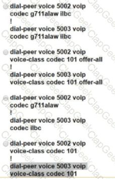 Outbound calls to the service provider cause intermittent errors due to a codec mismatch. The internal network sends early offer SDP that contains only G.711 A-law. The service provider reports that some destinations support only G.711 A-law while others support only iLBC. The service provider also allows only 20 active calls at a time Which configuration allows successful media negotiation for all calls using outbound dial peers 5002 and 5003?