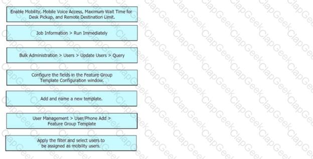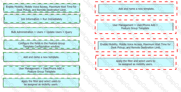 Drag and drop the steps from the left into the order to provision mobility users through LDAP on the right. Not all options are used.