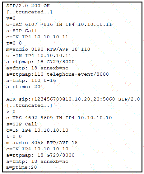 Refer to the exhibit An engineer deploys a Cisco Unified Border Element for SIP trunk interconnection to an ITSP The engineer performs test calls but there is no audio when the called party picks up the phone. What must the engineer do to resolve the issue?