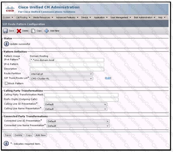 The customer is troubleshooting an issue where users cannot dial the CMS SIP Route Pattern. The CMS URI they are attempting to dial is 7772002@cms.domain.local. Which IPv4 pattern must the customer enter to resolve the issue?