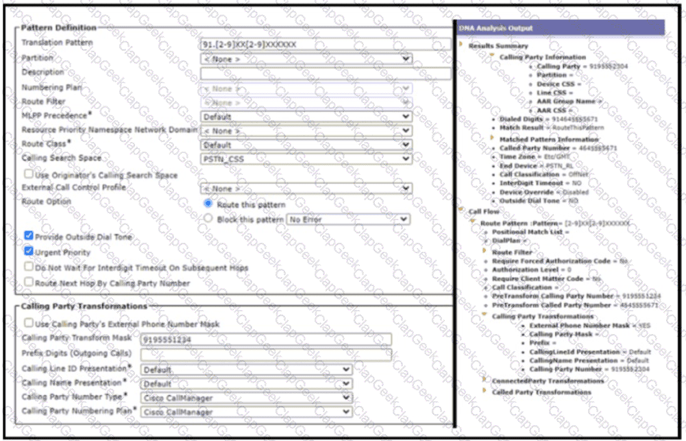 Refer to the exhibit. A collaboration engineer is troubleshooting an issue where the PSTN calls of a Cisco UCM IP phone user are not reaching the PSTN gateway. Which action resolves the issue?