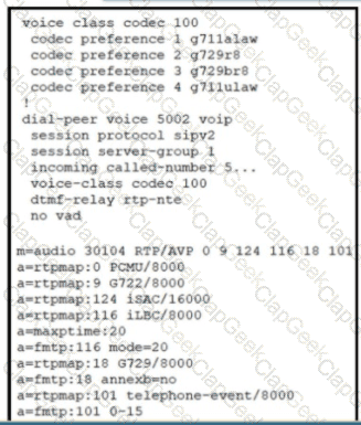 The Cisco Unified Border Element receives an INVITE matching inbound dial peer 5002. The outbound dial peer supports only iLBC. and a Local Transcoding Interface is allocated. Based on the configuration and SDP from the INVITE message, which codec is chosen by Cisco Unified Border Element for the inbound call leg?