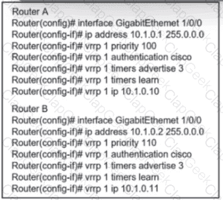 Refer to the exhibit. An engineer must adjust the configuration so that Router A becomes the active router. Which commands should be applied to router A? (Choose two)