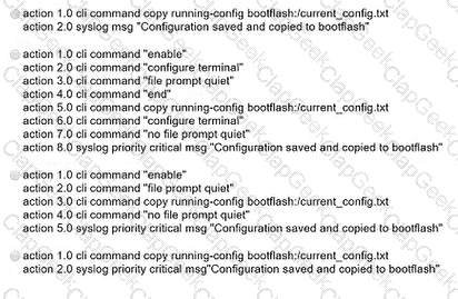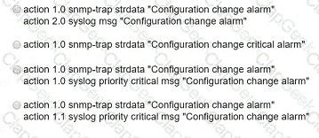 Refer to the exhibit. A network engineer must be notified when a user switches to configuration mode. Which script should be applied to receive an SNMP trap and a critical-level log message?