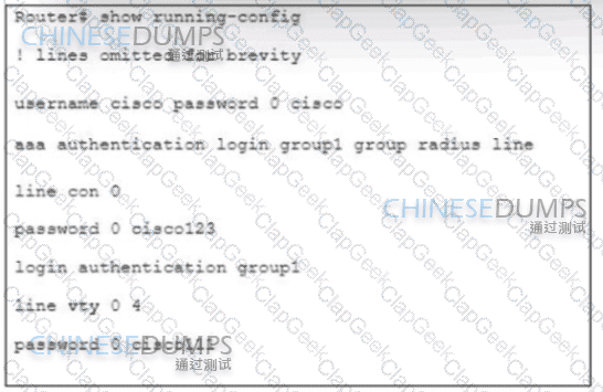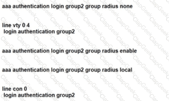 Refer to the exhibit. Authentication for users must first use RADIUS, and fall back to the local database on the router if the RADIUS server is unavailable Which two configuration sets are needed to achieve this result? (Choose two.)