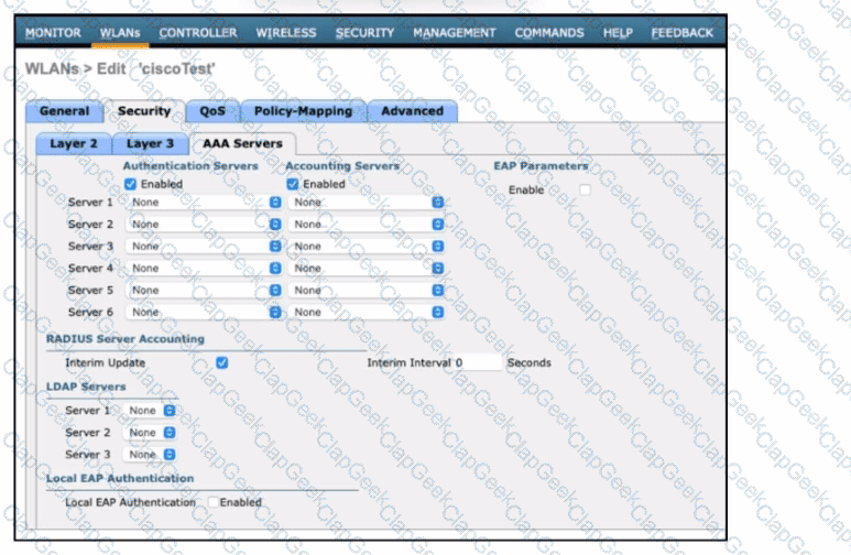 Refer to the exhibit. An engineer must configure a Cisco WLC with WPA2 Enterprise mode and avoid global server lists. Which action is required?