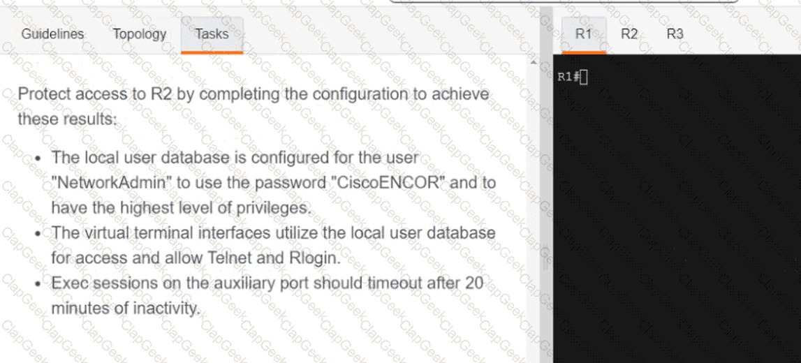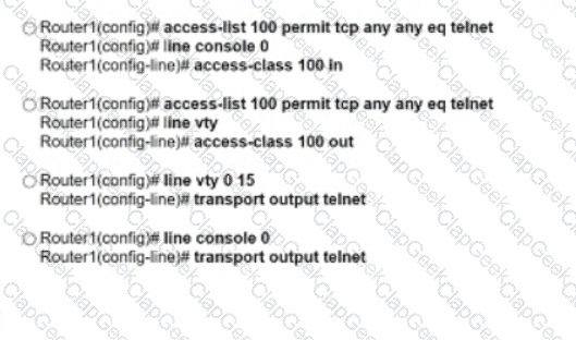 An engineer attempts to connect to another device from Route1’s console port. Which configuration is needed to allow telnet connections?