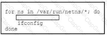 Drag and drop the code snippets from the right onto the blanks in the code on the left to complete the configuration. Not all code snippets are used.