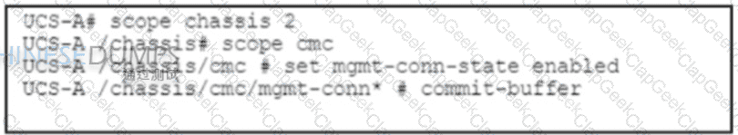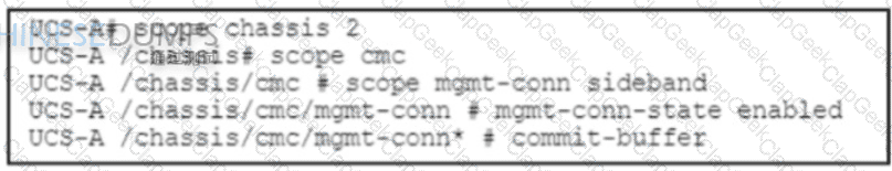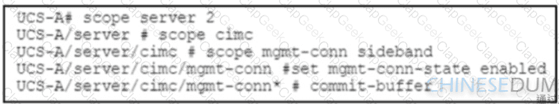 A Cisco UCS C-Series server needs to be installed in a data center. The server must be managed by using Cisco UCS Manager with a single cable for management and data traffic. Which set of commands must be run on the server after a physical connection is established?