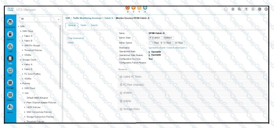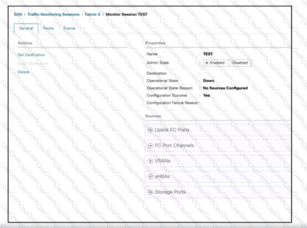 Refer to the exhibit. Users report SAN traffic packet loss on a blade server that is managed by using Cisco UCS Manager. An engineer must implement a SPAN feature to an external Fibre Channel analyzer. Which configuration source in the TEST monitoring session must the engineer select?
