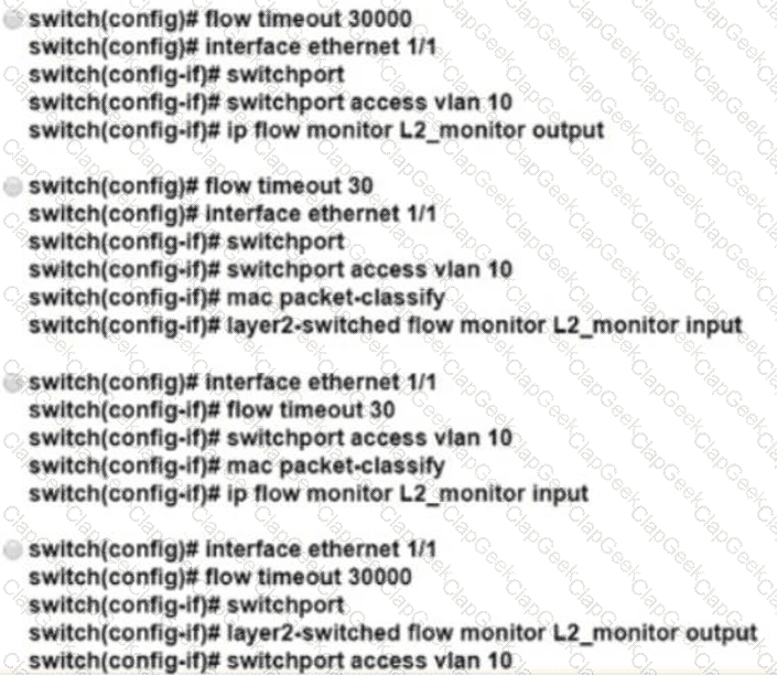 Refer to the exhibit. VLAN 10 Is experiencing delays and packet drops when the traffic is forwarded through the switch. The destination flow analyzer accepts traffic captures of not more than 30 seconds. Which configuration implements the traffic capture that meets the requirements?
