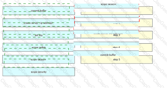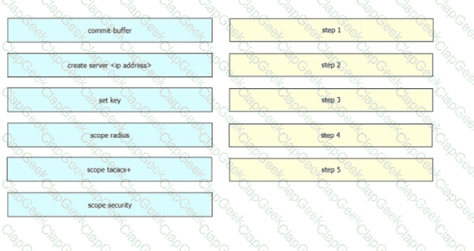 An engineer must configure remote authentication on a Cisco UCS system. The user password must be encrypted before it is sent to the authentication server. The company security policy requires the server to be based on an open standard. Drag and drop the UCS CLI AAA configuration commands from the left into the order in which they must be implemented on the right. Not all commands are used.