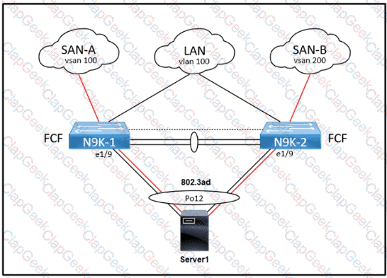 Refer to the exhibit. An administrator must complete the unified fabric configuration between Server1 and a pair of Cisco Nexus 9000 Series Switches Drag and drop the code snippets from the right onto the blanks in the code on the left to complete the N9K-1 configuration Snippets are used more than once.