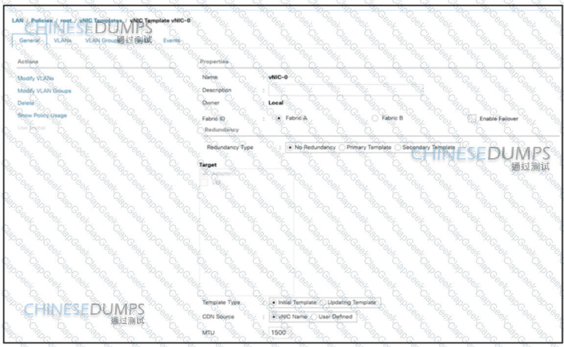 Refer to the exhibit. An engineer associates an ESX service profile to a blade server. The engineer adds a VLAN to the vNIC Template named vNIC-0 by using Cisco UCS Manager. The engineer discovers that the VLAN is missing on the vNIC of the ESX service profile. Which action adds the VLAN to the vNIC?