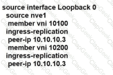 Refer to the exhibit. A network engineer must implement VXLAN between two core switches called CORE_2 and CORE_3. The core switches must have multicast disabled. In addition, the VLAN 100 called APP and VLAN 200 called DB must be extended between the core switches. The initial VXLAN configuration has been completed on CORE_2. Which Network Virtual Interface configuration completes VXLAN configura
